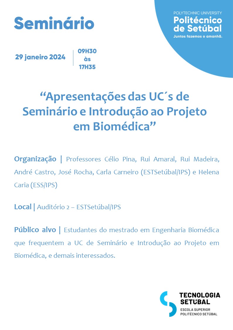 Seminário | Apresentações das UC´s de Seminário e Introdução ao Projeto em Biomédica | 29 de janeiro de 2024